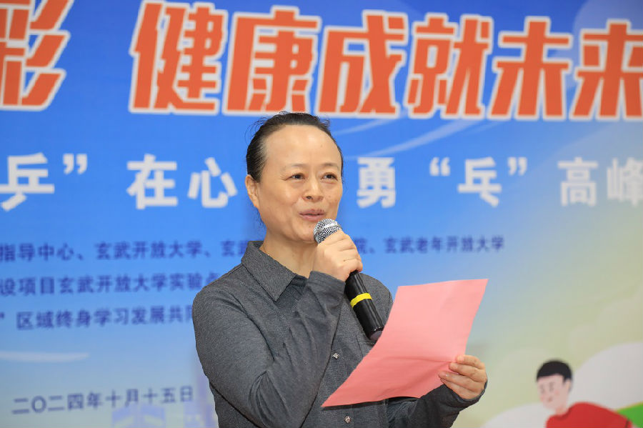 赛前,南京开放大学社区教育中心副主任陈云致辞,她对参加比赛的各位队员表示欢迎。希望各代表队、各位参赛选手以饱满的热情、昂扬的斗志投入到比赛中,遵循“友谊第一、比赛第二”和“参与、学习、提高、娱乐”的原则,赛出水平,赛出风格,赛出友谊,赛出新风尚!充分展现出玄武社区居民良好的体育道德风尚和竞技精神。